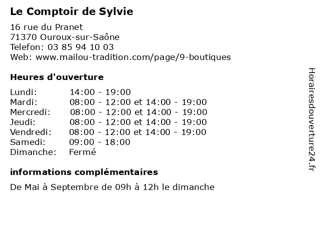 | Mercredi | 08:00-12:00 et 14:00-19:00 |