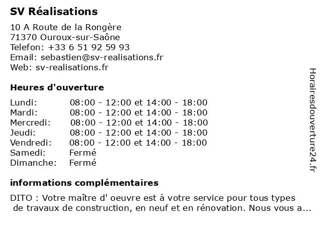 | Vendredi | 08:00-12:00 et 14:00-18:00 |