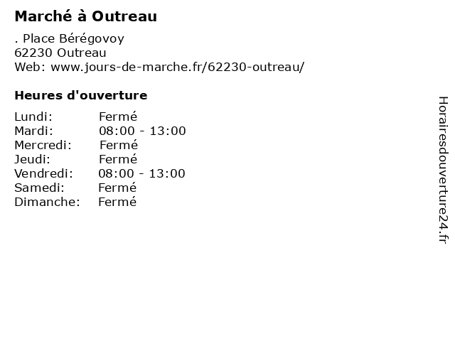 | Vendredi | 08:00-13:00 |