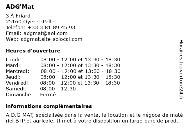 | Lundi | 08:00-12:00 et 13:30-18:30 |
