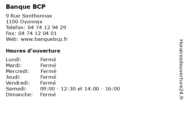 | Dimanche | Fermé |