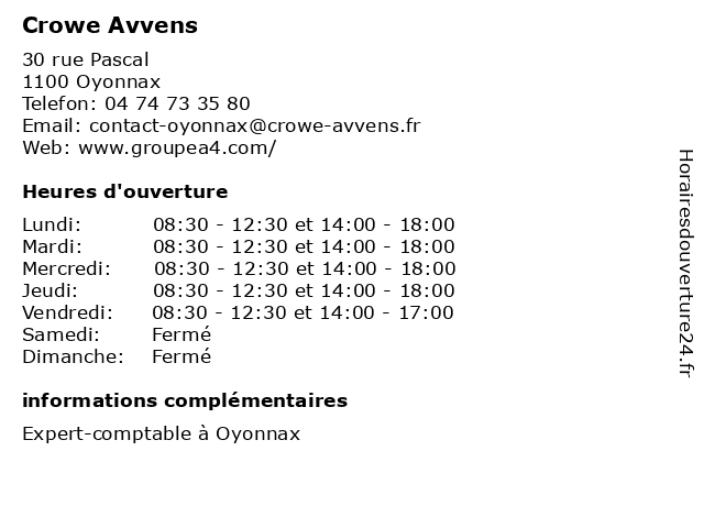 | Lundi | 08:30-12:30 et 14:00-18:00 |