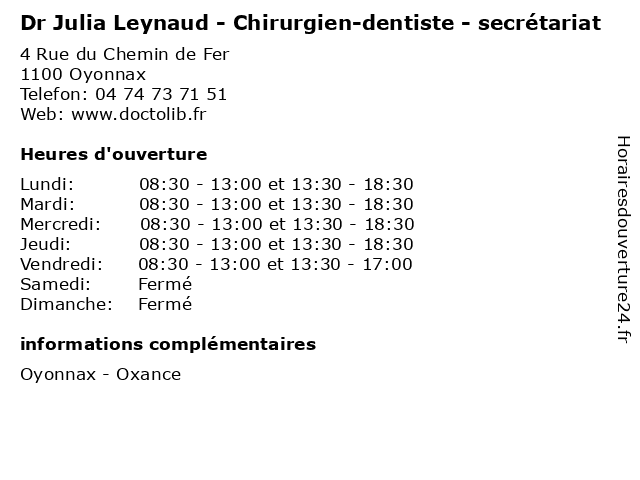 | Lundi | 08:30-13:00 et 13:30-18:30 |