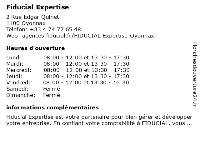 2 Activ'Expertise Oyonnax (Distance: 2,82 km) 10 Route de Groissiat, 01100 Bellignat activ'expertise, oyonnax 3 FIDUCIAL Expertise Montréal la Cluse (Distance: 11,49 km) 95 Rue du Jura, 01460 Montréal-la-Cluse cluse, expertise, fiducial, la, montréal 4 Implid Expertise Conseil (Distance: 12,74 km) 2 Rue Henri Dunant, 01130 Nantua cabinet, comptabilité, conseil, expertise, fiscalité, gestion, implid, juridique, paie, social 5 Cerfrance - Expertise Comptable (Distance: 18,98 km) 300 rue Santos Dumont, 01200 Valserhone cerfrance, comptable, conseil, expertise, fiscalite, transmission 6 |