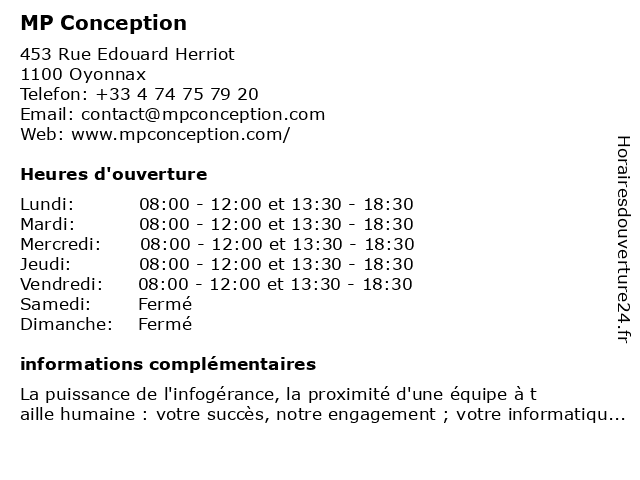 | Lundi | 08:00-12:00 et 13:30-18:30 |