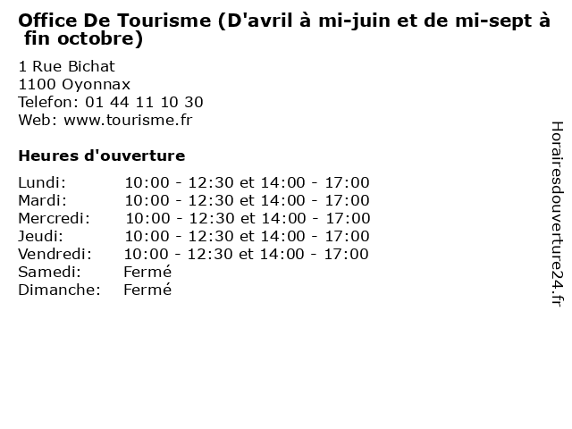 | Mardi | 10:00-12:30 et 14:00-17:00 |