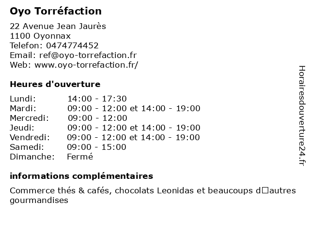 | Dimanche | Fermé |