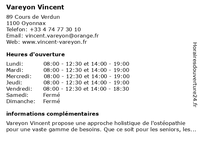 | Lundi | 08:00-12:30 et 14:00-19:00 |