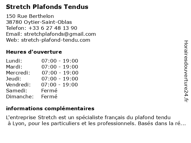 | Samedi | Fermé |