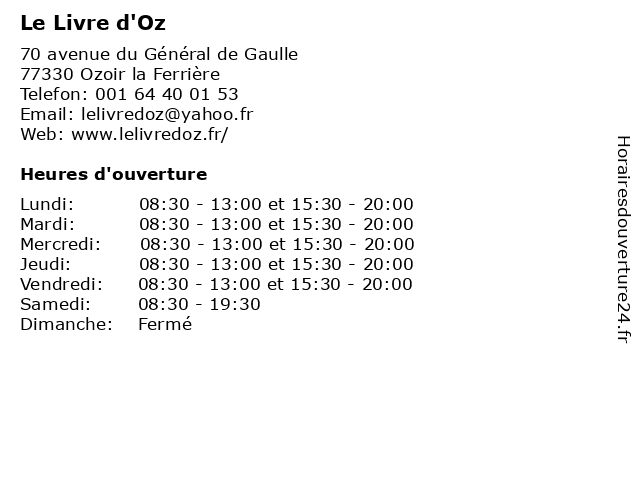 | Mardi | 08:30-13:00 et 15:30-20:00 |