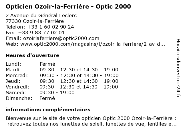 | Mardi | 09:30-12:30 et 14:30-19:00 |