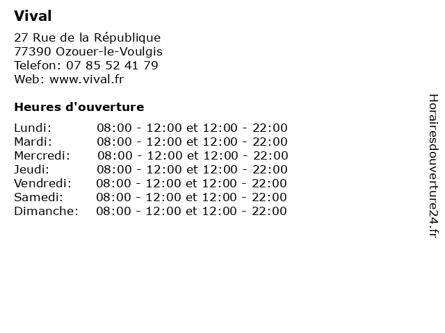 | Mardi | 08:00-12:00 et 12:00-22:00 |