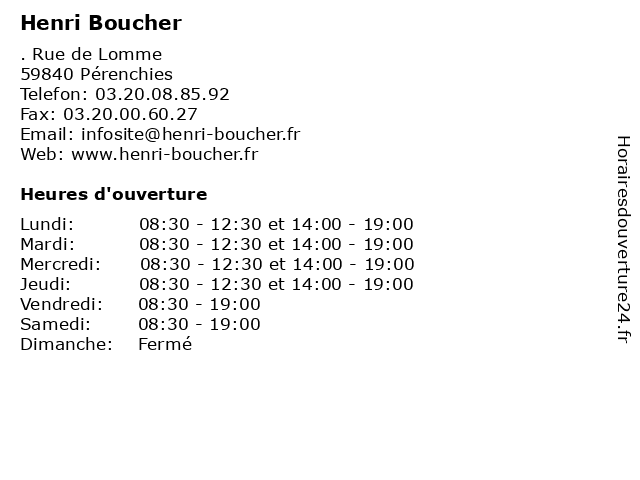1 Henri Boucher (Distance: 3,91 km) 17 Rue Lavoisier, 59160 Lomme alimentation, boucher, boucherie, boucheries, charcuterie, france, henri 2 Henri Boucher (Distance: 5,83 km) - Rue Fidèle L'Hermitte, 59320 Haubourdin boucher, boucherie, charcuterie, charcutier, henri, traiteur 3 Henri Boucher (Distance: 6,37 km) 261 Boulevard Victor Hugo, 59116 Houplines alimentation, boucher, boucherie, charcuterie, henri 4 Henri Boucher (Distance: 6,55 km) 85 Rue Séré de Rivières, 59118 Wambrechies alimentation, boucher, boucherie, boucheries, charcuterie, france, henri 5 Henri Boucher (Distance: 7,04 km) 71 Rue Nationale, 59700 Marcq En Baroeul alimentation, boucher, boucherie, charcuterie, henri 6 Henri Boucher (Distance: 7,74 km) 137 Rue de Menin, 59520 Marquette-lez-Lille alimentation, boucher, boucherie, boucheries, charcuterie, france, henri |