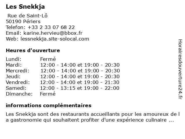 Mardi | 12:00-14:00 et 19:00-20:30 |