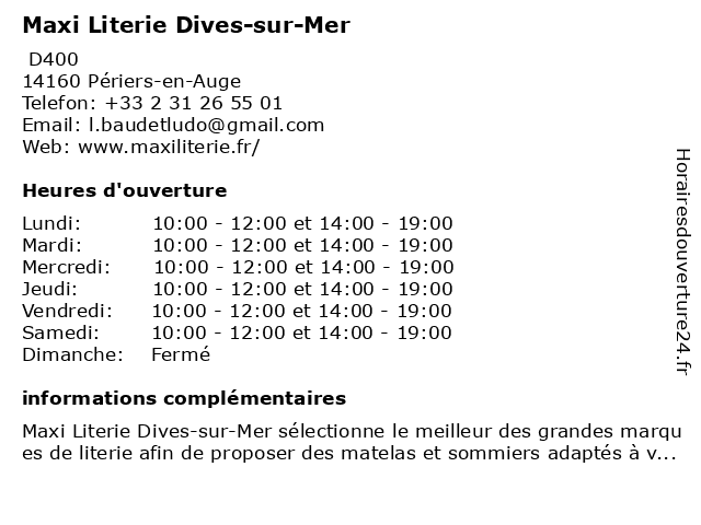 Lundi | 10:00-12:00 et 14:00-19:00 |