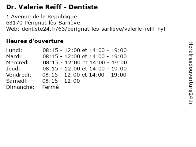 | Lundi | 08:15-12:00 et 14:00-19:00 |