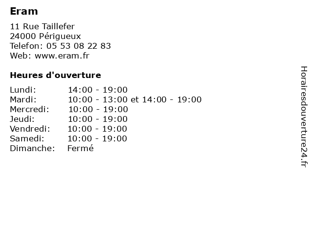 | Mardi | 10:00-13:00 et 14:00-19:00 |
