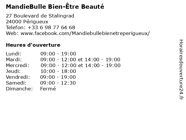 | Mardi | 09:00-12:00 et 14:00-19:00 |