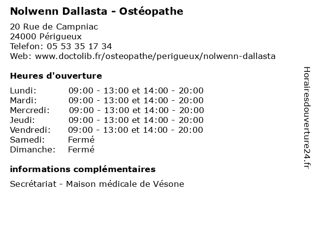 | Lundi | 09:00-13:00 et 14:00-20:00 |