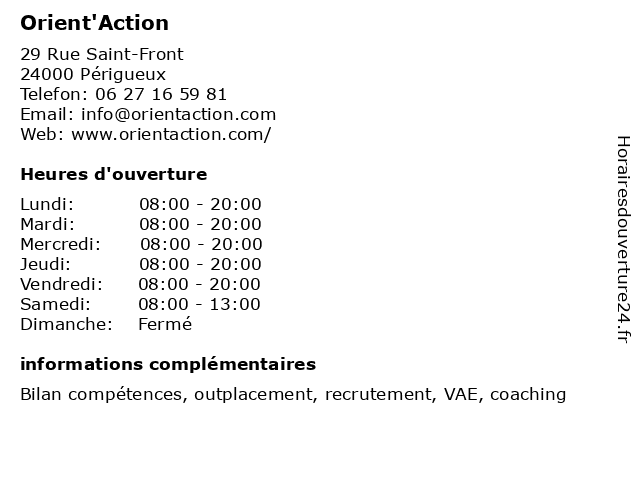 | Vendredi | 08:00-20:00 |