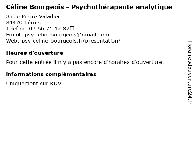 | Appeler Céline Bourgeois - Psychothérapeute analytique | |