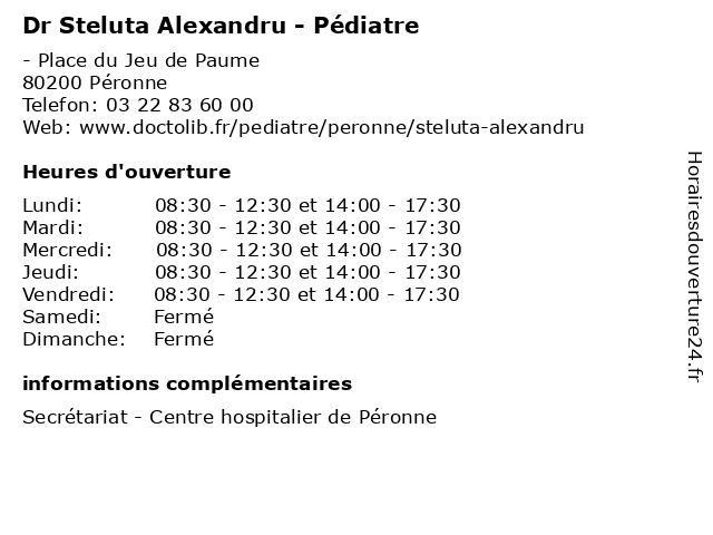 | Lundi | 08:30-12:30 et 14:00-17:30 |