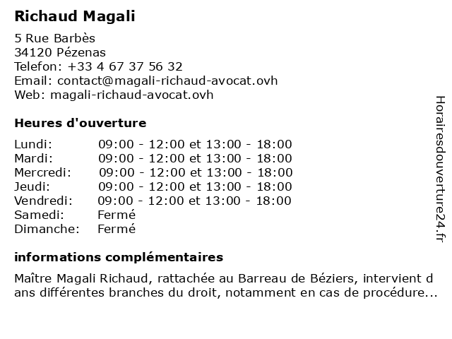 | Lundi | 09:00-12:00 et 13:00-18:00 |