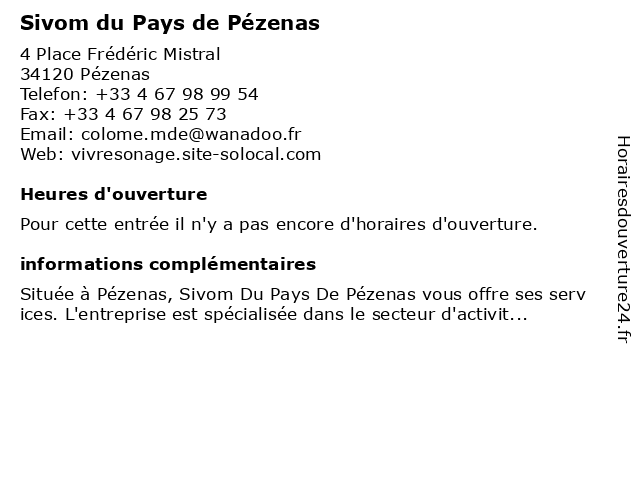 | Appeler Sivom du Pays de Pézenas | |