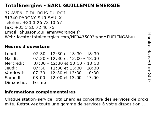 Termes de recherche pour TotalEnergies - SARL GUILLEMIN ENERGIE:énergie, sarl, total, gas station, guillemin, station service, tankstelle, totalenergies |
