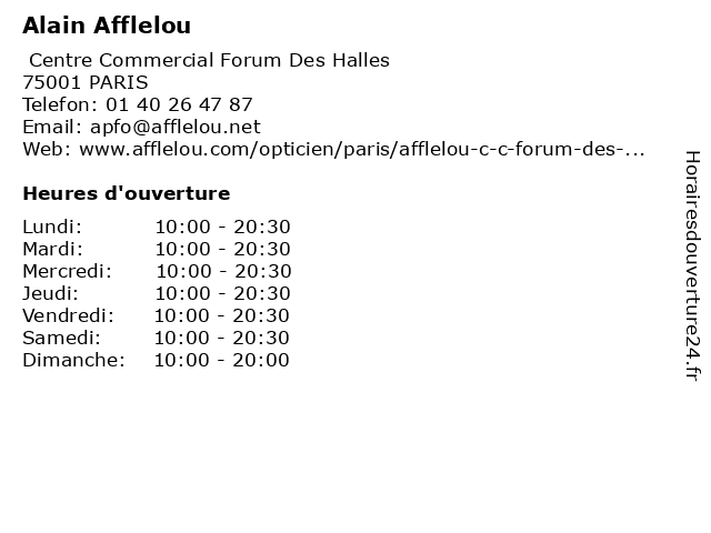 | Lundi | 10:00-20:30 |
