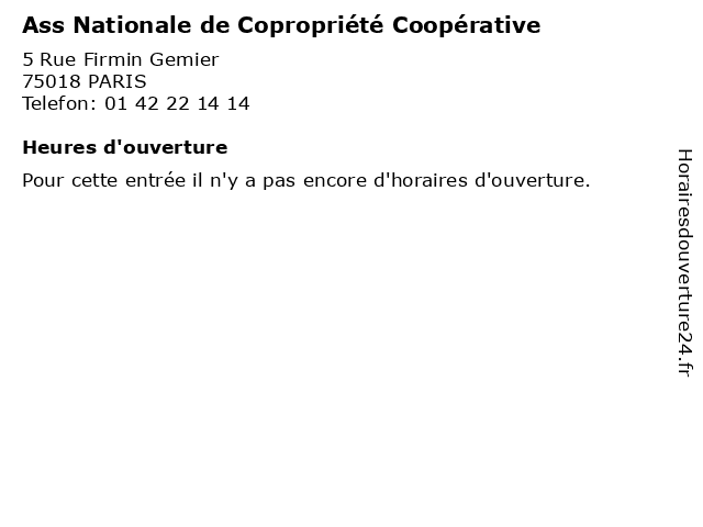 | Appeler Ass Nationale de Copropriété Coopérative | |