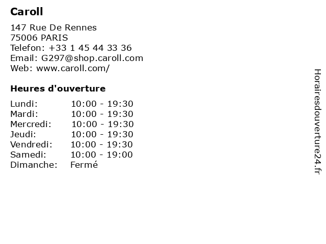 | 1 Caroll (Distance: 0,23 km) 51 Rue Saint-Placide, 75006 Paris blazer femme, cardignan femme, caroll, chaussures femme, gilet femme, jean femme, magasin femme, magasin vêtements, manteau femme, mode femme, pull femme, robe femme, sac femme, t-shirt femme, tailleur femme, top femme, vêtements femmes 3 Caroll (Distance: 2,13 km) 27 Rue Du Commerce, 75015 Paris blazer femme, cardignan femme, caroll, chaussures femme, gilet femme, jean femme, magasin femme, magasin vêtements, manteau femme, mode femme, pull femme, robe femme, sac femme, t-shirt femme, tailleur femme, top femme, vêtements femmes 5 Caroll (Distance: 3,14 km) 64 Boulevard Haussmann,, 75009 Paris caroll, décontracté, fantaisie, mode, tendance 6 |