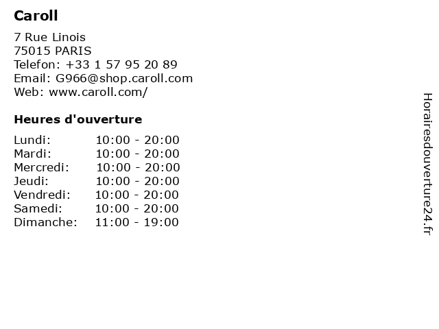 | Lundi | 10:00-20:00 |