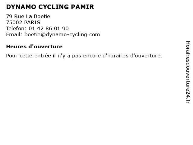 2 Restaurant Dynamo (Distance: 4,62 km) 104 Avenue Simon Bolivar, 75019 Paris bar, bistro, bistrot, brasserie, café, dynamo, restaurant, restauration 3 CMG Sports Club / Activités - Aqua Cycling (Distance: 4,76 km) 11 rue Chanez, 75016 Paris activités, aqua, club, cmg, cycling, exercise, fitness, health, outdoor, physical activities, sports 4 CMG Sports Club / Activités - Cycling (Distance: 4,76 km) 11 rue Chanez, 75016 Paris activités, club, cmg, cycling, exercise, fitness, health, outdoor, physical activities, sports 5 Addict Cycling (Distance: 13,50 km) 60 Grande rue Charles de Gaulle, 94130 Nogent-sur-Marne accessoires, addict, cycles, cycling, réparation, vente, vélos 6 Pizza First (Distance: 51,46 km) 42 Rue Nationale, 78710 Rosny Sur Seine first, pamir, pizza, restaurants |