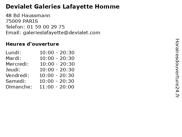 | Lundi | 10:00-20:30 |