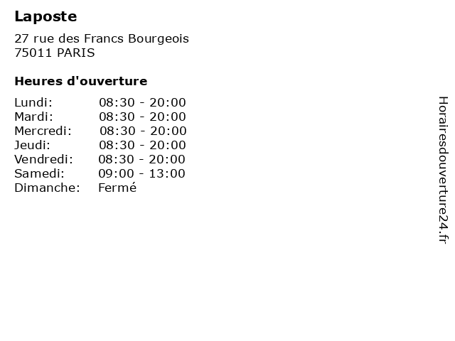 | Lundi | 08:30-20:00 |