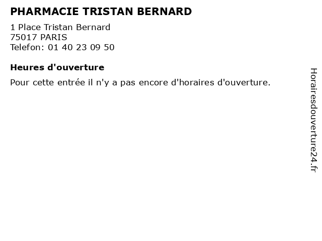| Appeler PHARMACIE TRISTAN BERNARD | |