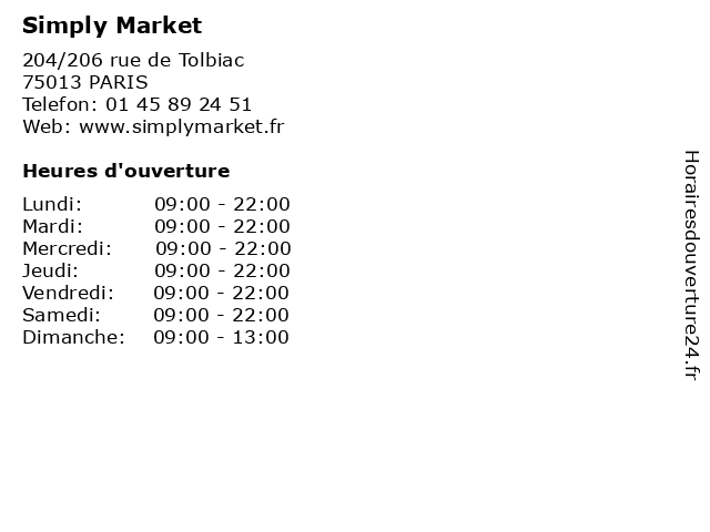 1 Simply Market (Distance: 2,08 km) 110 avenue Aristide Briand, 92120 MONTROUGE market, simply, supermarchés en franc 2 Simply Market (Distance: 2,57 km) 73 boulevard Brune, 75014 PARIS market, simply, supermarchés en franc 3 5 Simply Market (Distance: 4,02 km) 160 avenue de Paris, 92320 CHATILLON SOUS BAGNEUX market, simply, supermarchés en franc 6 Simply Market (Distance: 5,86 km) 35 rue Paul Hochart, 94240 HAY LES ROSES market, simply, supermarchés en franc |