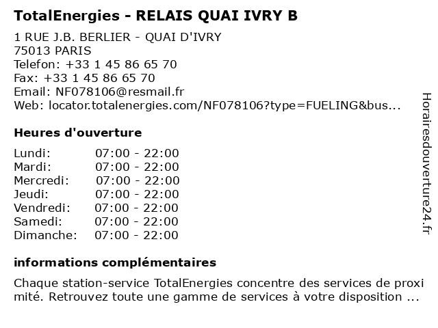 Termes de recherche pour TotalEnergies - RELAIS QUAI IVRY B:relais, ivry, total, quai, gas station, station service, tankstelle, totalenergies |