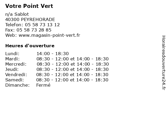 Samedi | 08:30-12:00 et 14:00-18:30 |