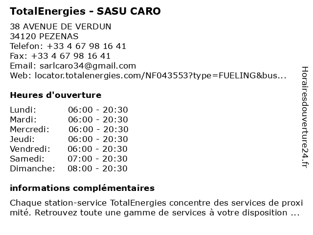 Termes de recherche pour TotalEnergies - SASU CARO:total, sasu, çaro, gas station, station service, tankstelle, totalenergies |