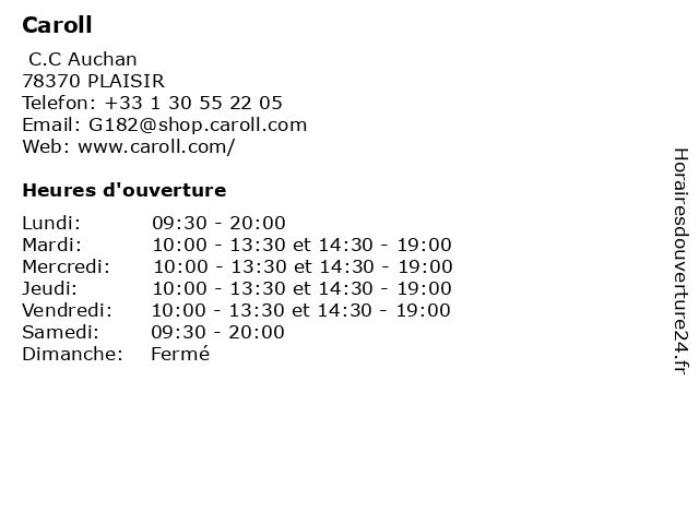 | Mardi | 10:00-13:30 et 14:30-19:00 |
