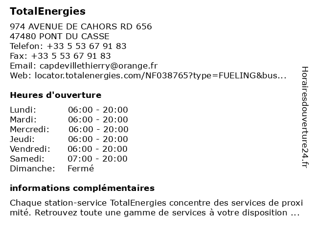 | Lundi | 06:00-20:00 |