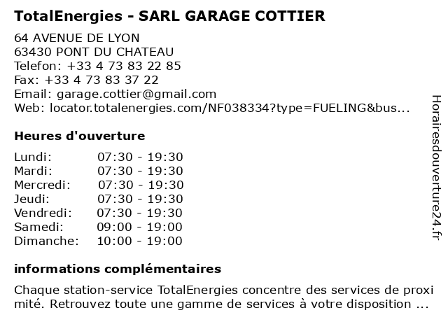 | Lundi | 07:30-19:30 |
