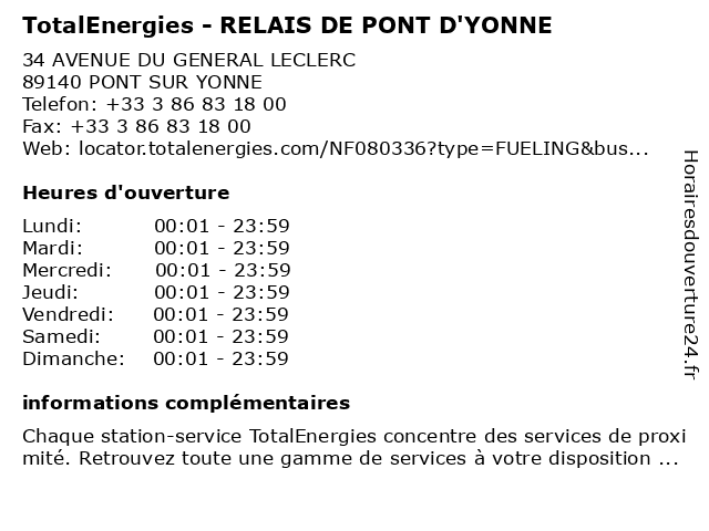 Termes de recherche pour TotalEnergies - RELAIS DE PONT D'YONNE:relais, de, pont, total, d'yonne, gas station, station service, tankstelle, totalenergies |
