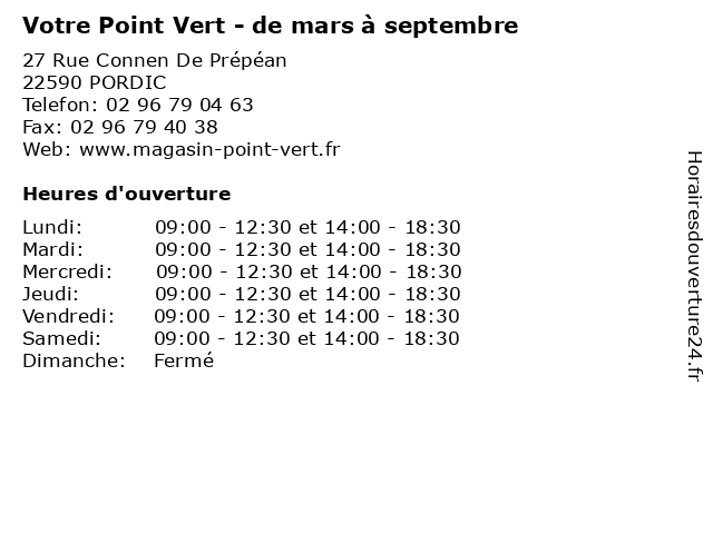 1 Votre Point Vert - de mars à septembre (Distance: 11,14 km) n/a Les Châtelets, 22440 PLOUFRAGAN animals, clothing, de, flower market, garden, garden tools, interior, mars, pet, point, septembre, vert, votre 2 Votre Point Vert - de mars à septembre (Distance: 13,49 km) n/a Rue des Fontaines, 22290 LANVOLLON animals, clothing, de, flower market, garden, garden tools, interior, mars, pet, point, septembre, vert, votre 3 Votre Point Vert - de mars à septembre (Distance: 15,12 km) 1 place Charles de Gaulle, 22940 PLAINTEL animals, clothing, de, flower market, garden, garden tools, interior, mars, pet, point, septembre, vert, votre 4 Votre Point Vert - de mars à septembre (Distance: 15,58 km) 44 rue de Brest, 22120 HILLION animals, clothing, de, flower market, garden, garden tools, interior, mars, pet, point, septembre, vert, votre 5 Votre Point Vert - d'octobre à février (Distance: 0,00 km) 27 Rue Connen De Prépéan, 22590 PORDIC animals, clothing, d'octobre, flower market, février, garden, garden tools, interior, pet, point, vert, votre 6 Hôtel Du Champ De Mars (Distance: 8,10 km) 13 Rue du Général Leclerc, 22000 Saint-Brieuc champ, de, du, hôtel, mars |