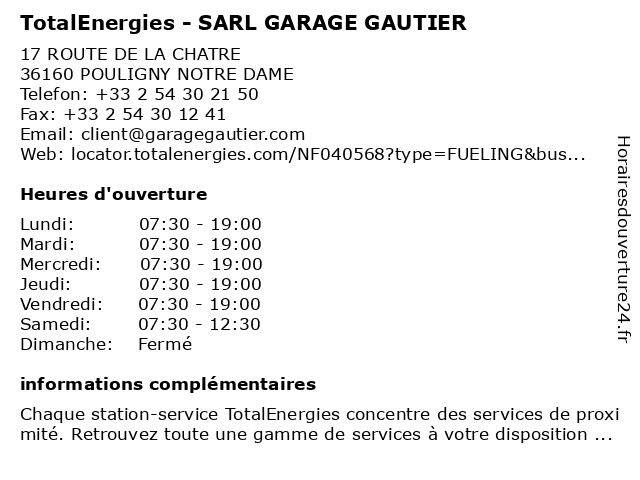 Termes de recherche pour TotalEnergies - SARL GARAGE GAUTIER:garage, sarl, total, gautier, gas station, station service, tankstelle, totalenergies |