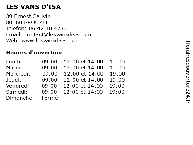 | Samedi | 09:00-12:00 et 14:00-19:00 |