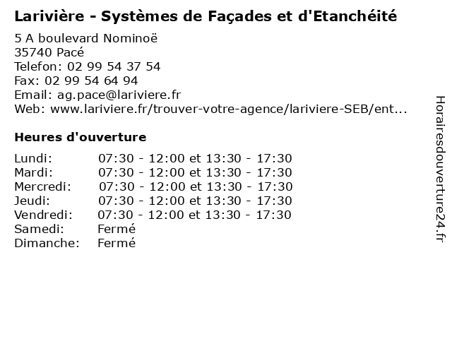 | Lundi | 07:30-12:00 et 13:30-17:30 |