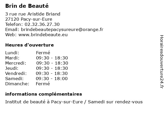 1 Arôma Institut de Beauté (Distance: 0,53 km) 77 Rue Aristide Briand, 27120 Ménilles arôma, beauté, de, institut, manucure, massage, soins, épilation 2 BAB - Bar à Beauté (Distance: 5,34 km) - route nationale 13, 27930 Guichainville bab, bar, beauté, manucure, maquillage, épilation 3 Christelle Beauté (Distance: 10,73 km) 14 Rue Aux Huiliers, 27200 Vernon africain, beauté, christelle, coiffeur, coiffure, coupe, soin 4 L'Oasis de Beauté (Distance: 15,80 km) 6 Place Dupont de l'Eure, 27000 Evreux beauté, corps, de, institut de beauté, l'oasis, soins, uv, visage épilations 5 A l'Eure De La Frite Et 100% Beauté (Distance: 15,80 km) A l Eure De La Frite Et 100 Beaute, 27000 Evreux 100, beauté, eure, frite, jerome, restaurants, throuet 6 Institut de Beauté Arnold Catherine (Distance: 16,03 km) 24 rue de Grenoble, 27000 Evreux arnold, beauté, catherine, de, institut, instituts de beauté, soins esthétiques |